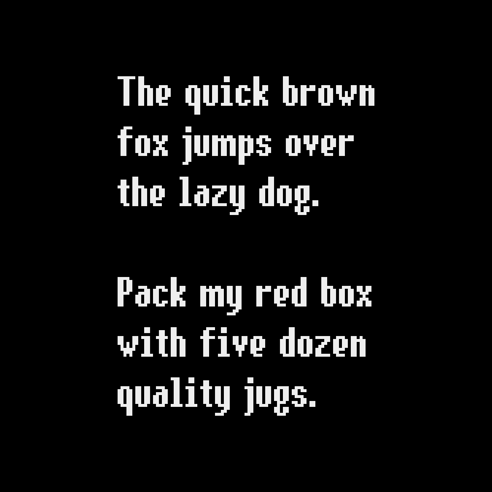 Suggested size: 12/24pts. Disable anti-aliasing.